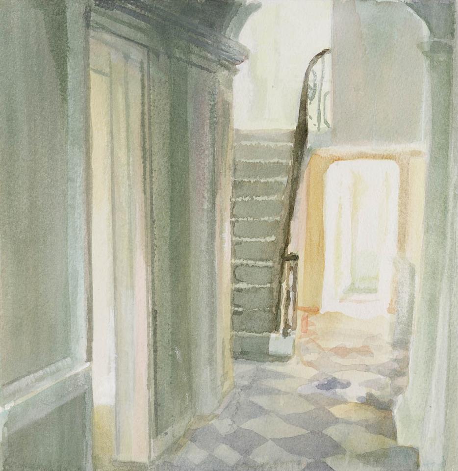 In the same way that the internal life of a person is the subject of the figure paintings, the resonance of a particular place is the focus of this series. The empty space is as important as the structure. Often the people are no longer present but it is in their very absence that they are palpable. The consciousness of previous occupants, ghosts of memory, linger.