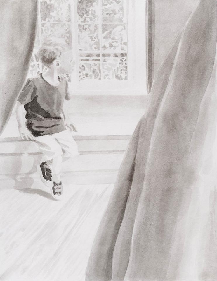 Perched - ink on paper   31 x 24cm