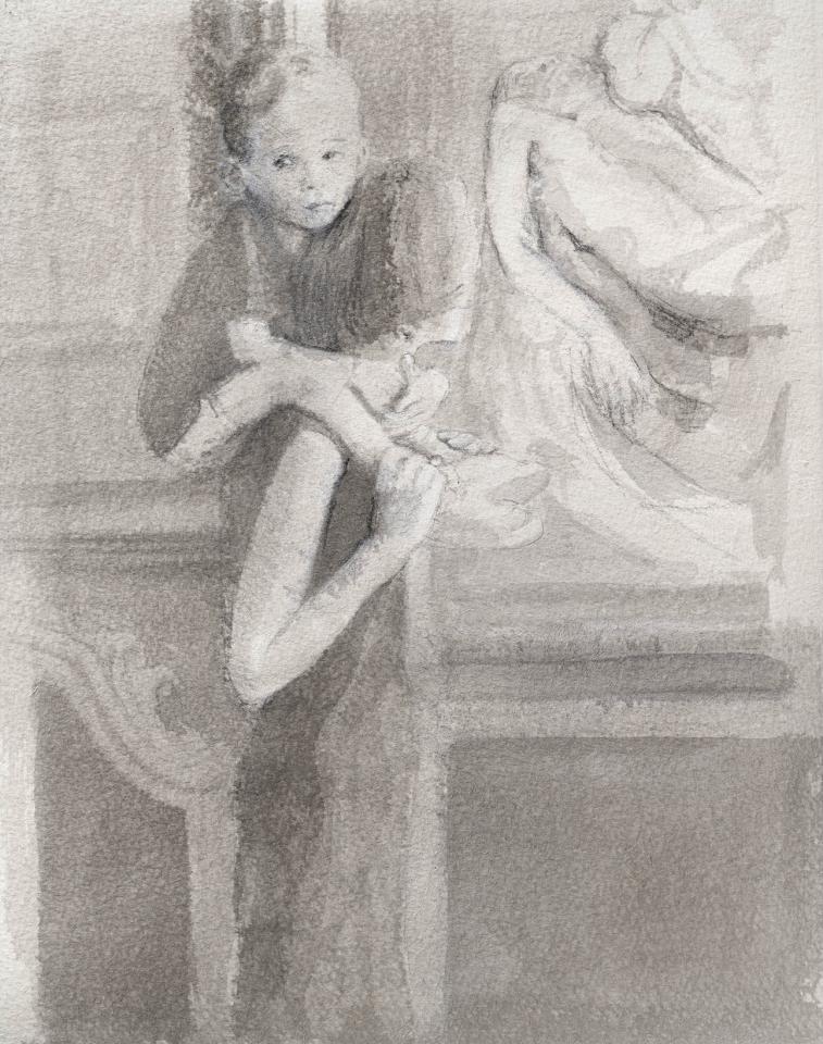 Mother and Son study - pencil and ink, 31 x 25cm