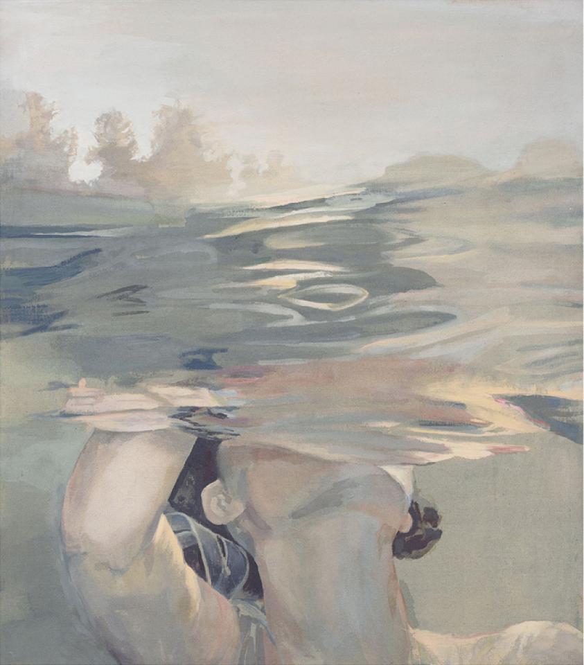 The experience of being underwater is a recurrent theme. We move and behave differently, our body language is less controlled and more revealing. Sometimes the water cocoons the figure, centring it back to the internal world. Other figures are seen from underwater, weightless, some without heads, their expression coming out in body, shape and movement alone. At times the silence and stillness of the underwater space is thrown into relief by the agitation of life on the surface.