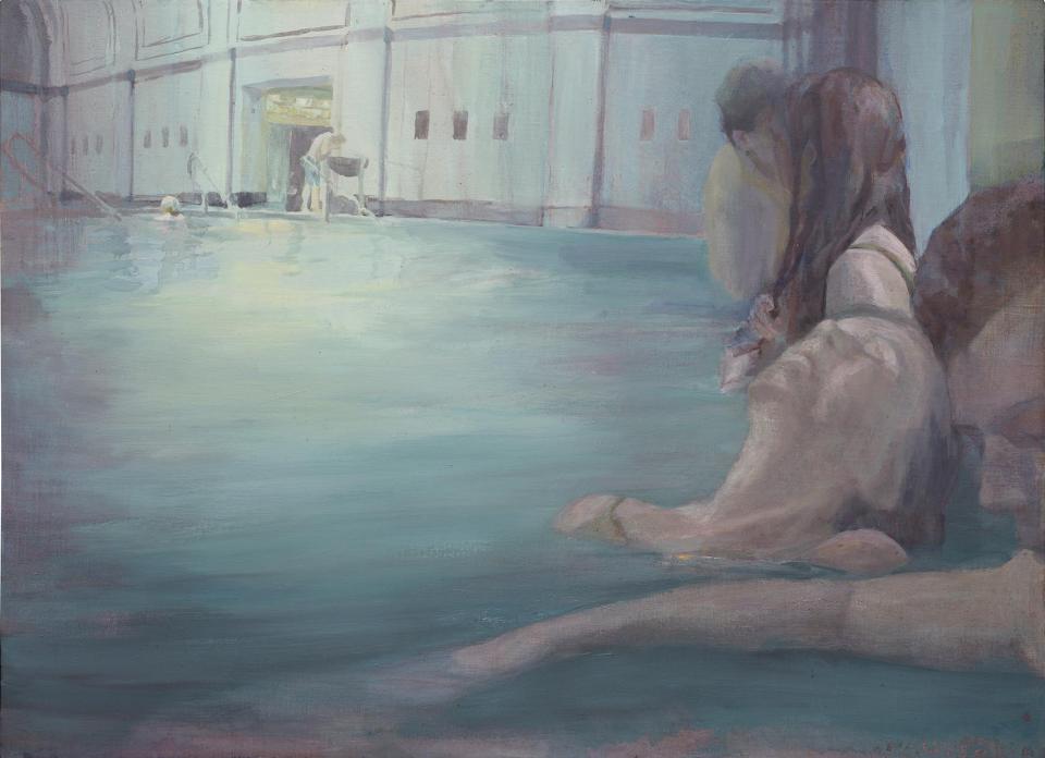 At the Baths - mixed media on canvas on board 59 x 81cm